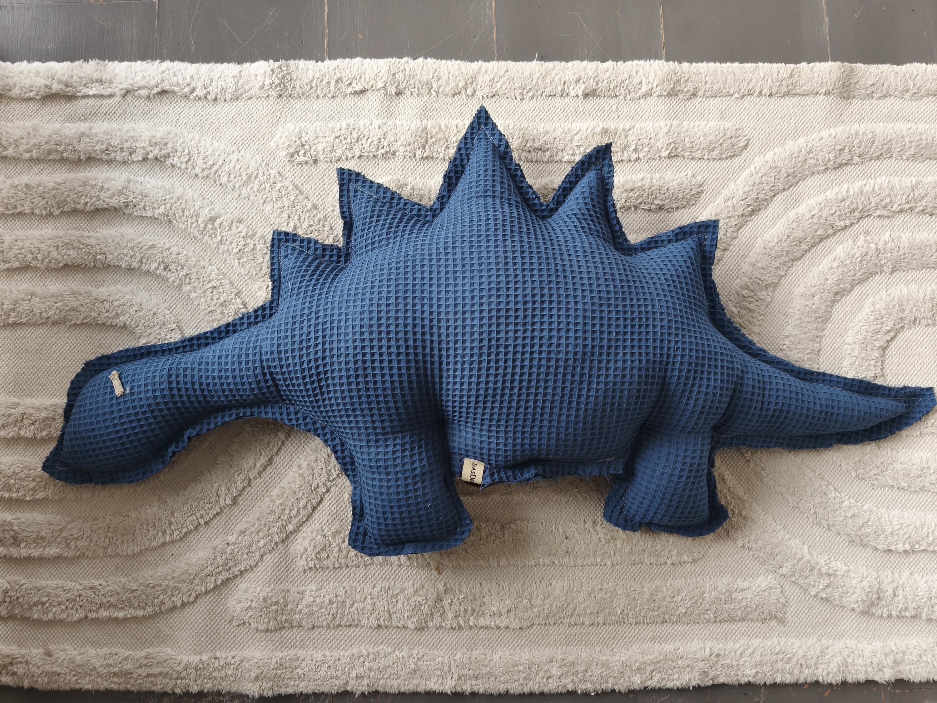 I have a cuddly dinosaur pillow made of waffle pique for you. This pillow is the perfect snuggle companion.