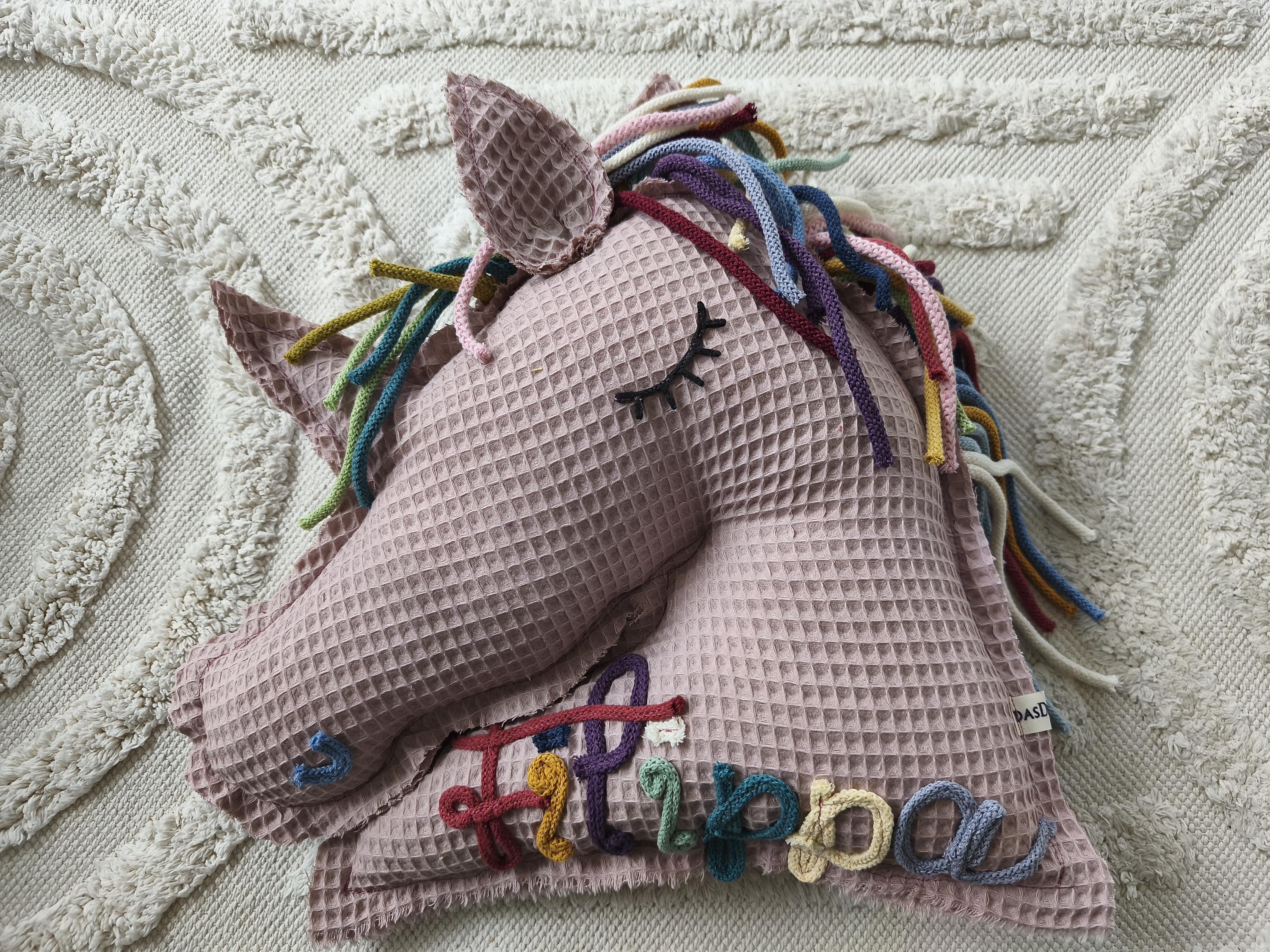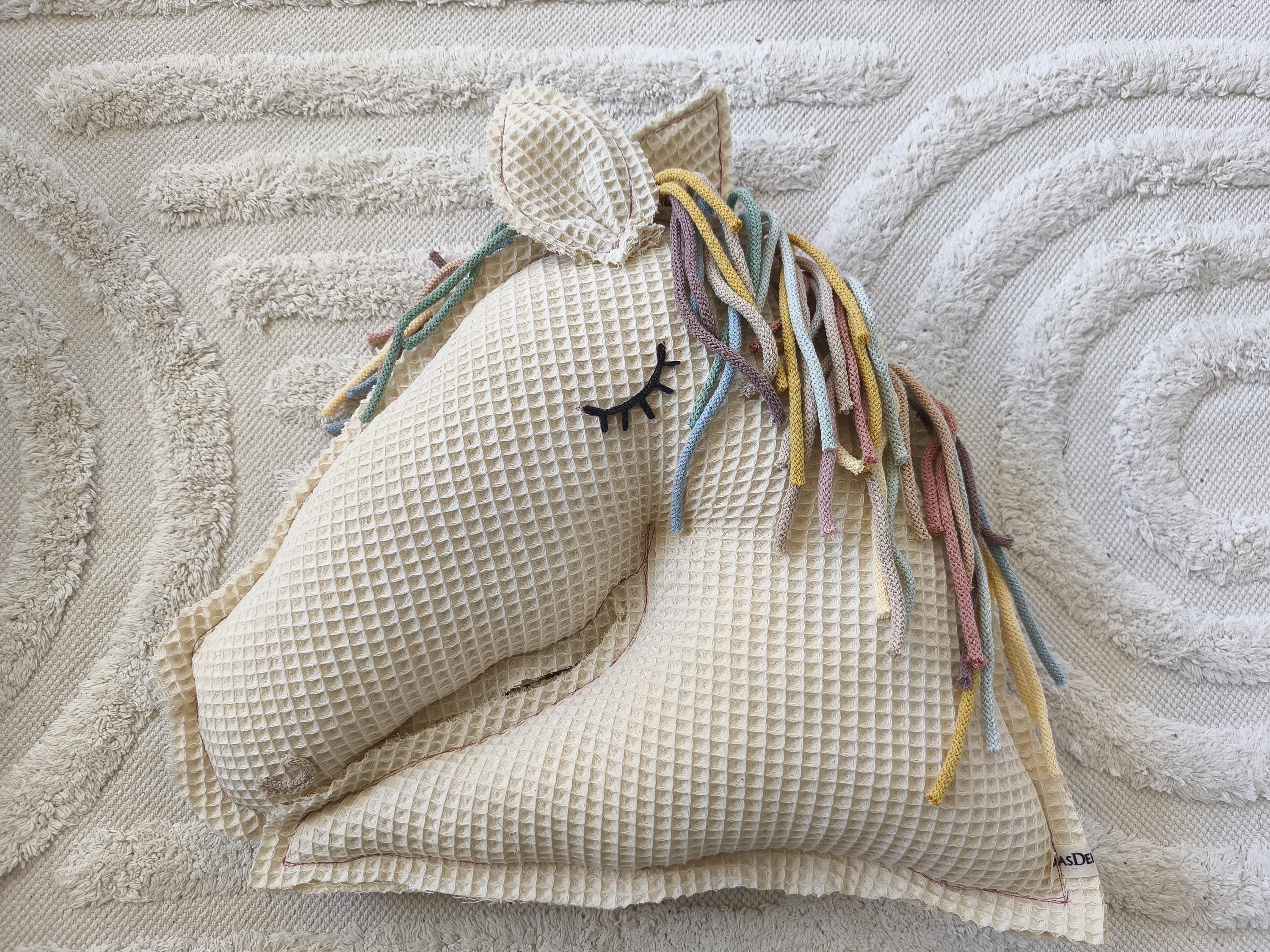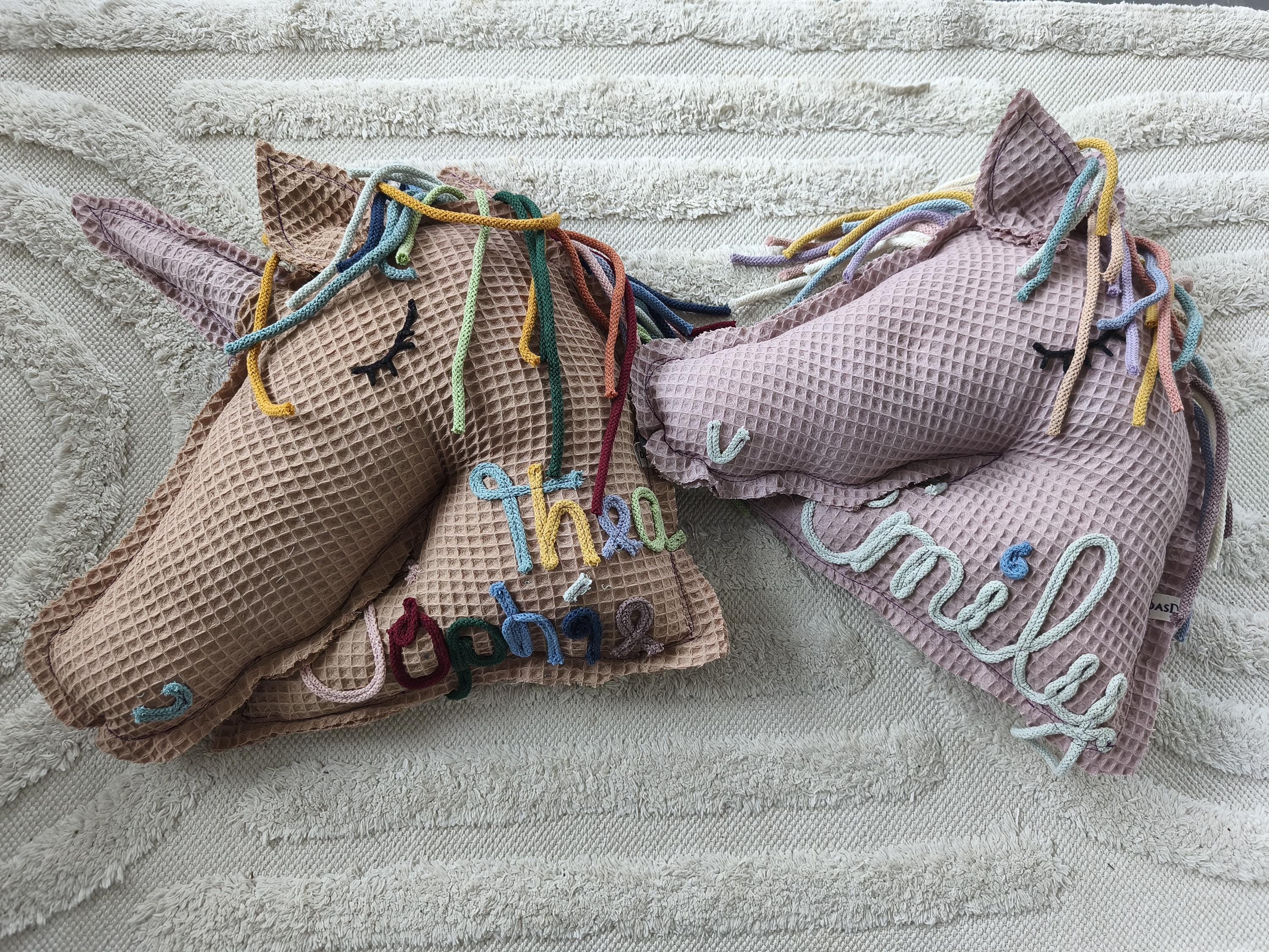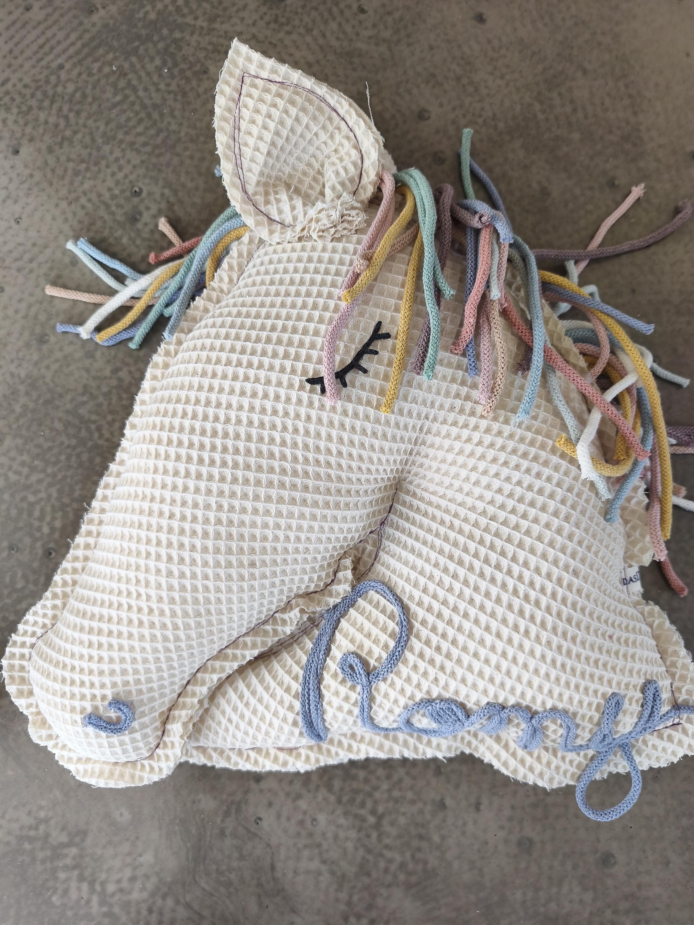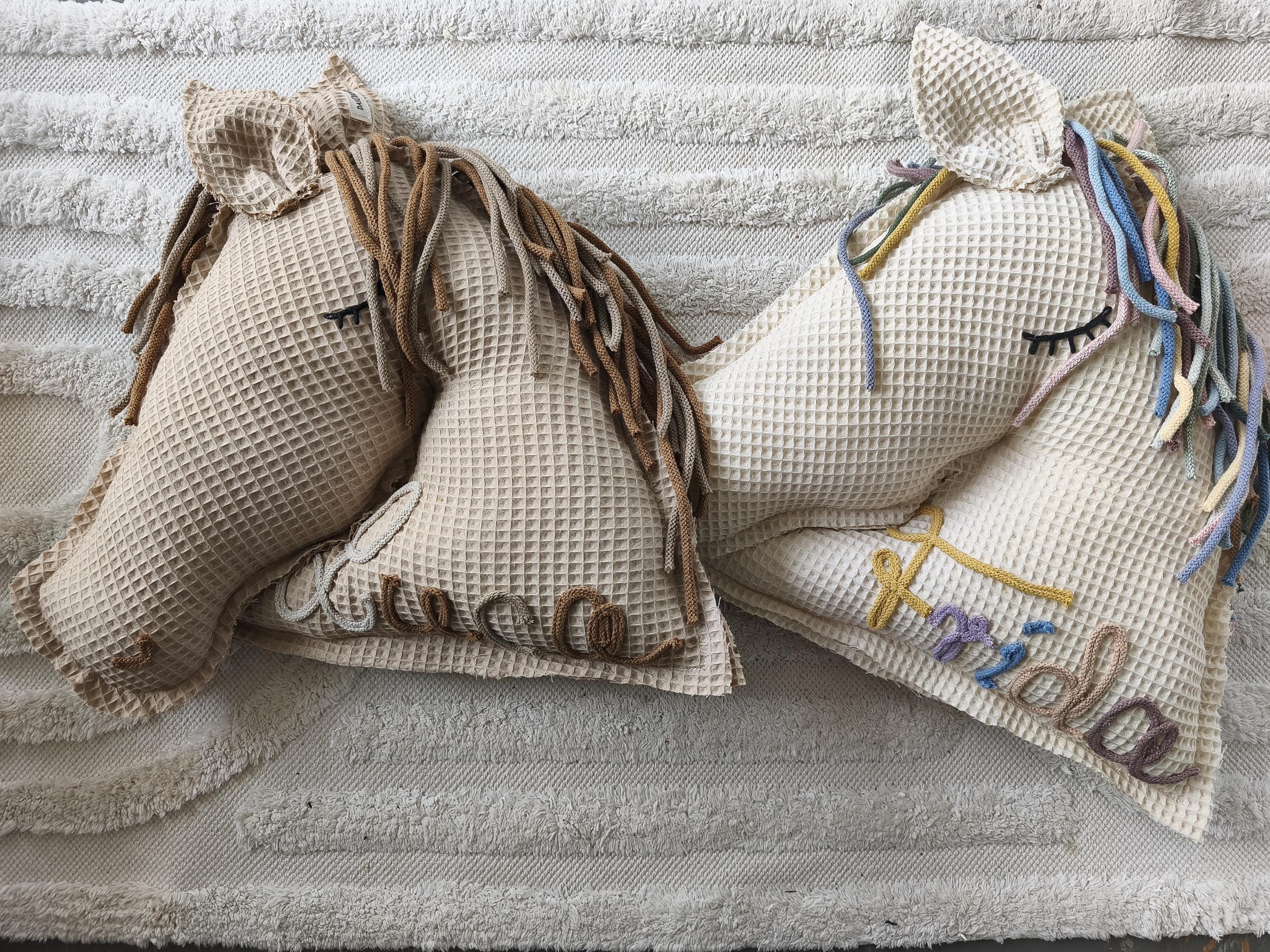 This charming horse cushion is not only a decorative highlight for any room, but also a comfortable companion. Made from high-quality cotton fabric, the cushion features a unique, handcrafted stitching that gives it an individual, handcrafted touch. With its distinctive design and soft cotton cover, it offers both comfort and stylish accents for horse lovers and nature enthusiasts.