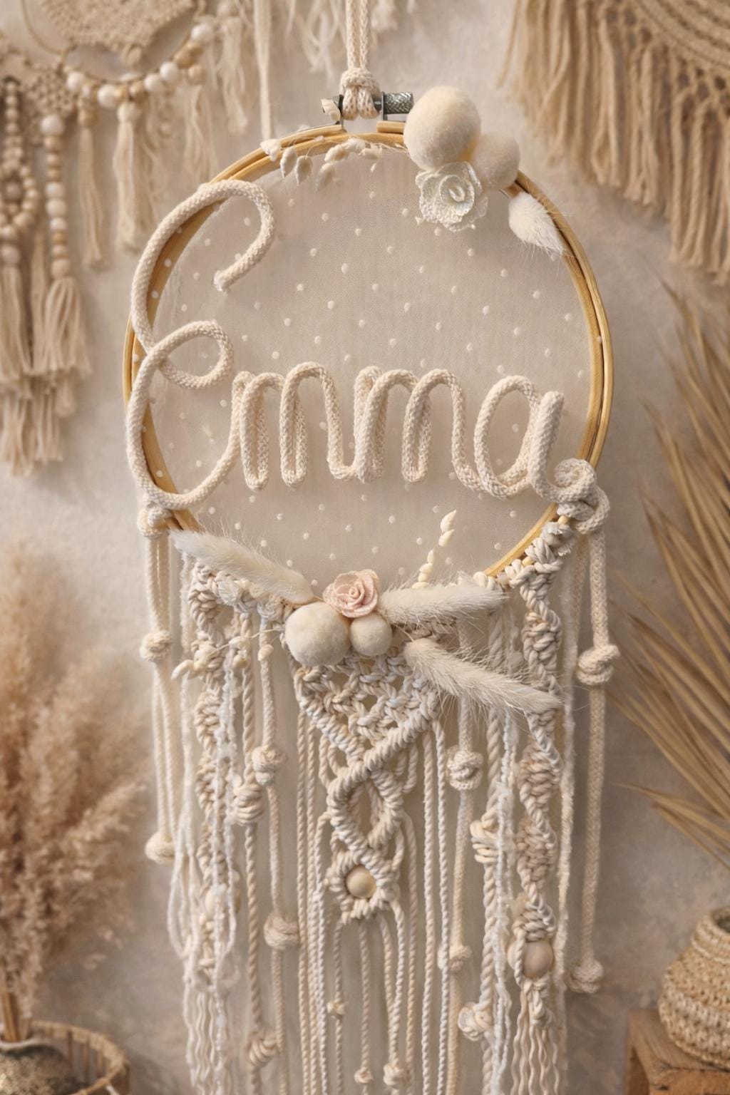 Each dreamcatcher is handcrafted by me with love. From the pompom to the name