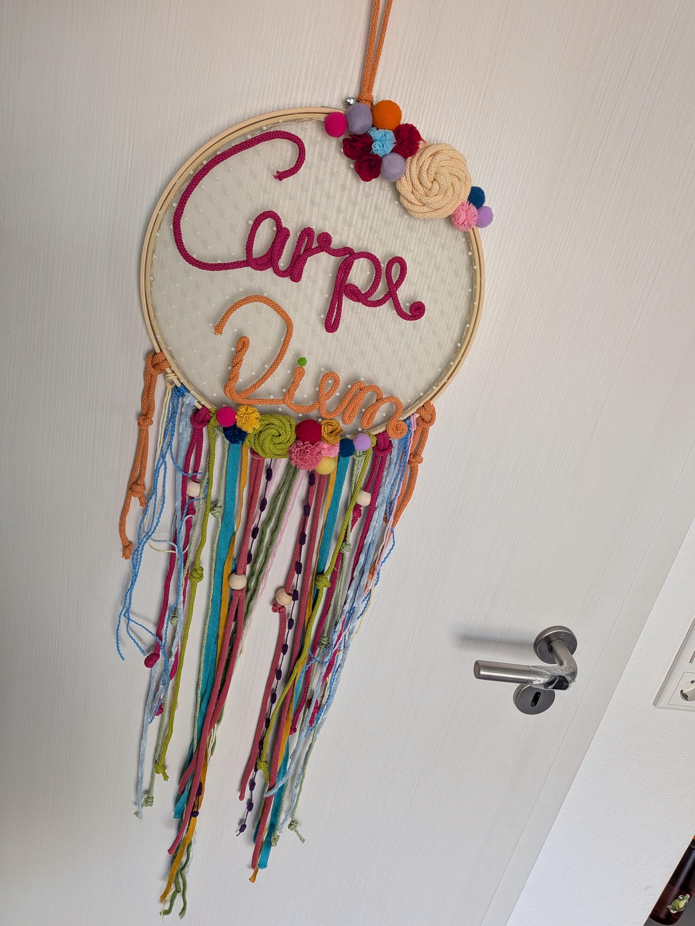 Each dreamcatcher is lovingly handcrafted by me, from the pom-pom to the name.