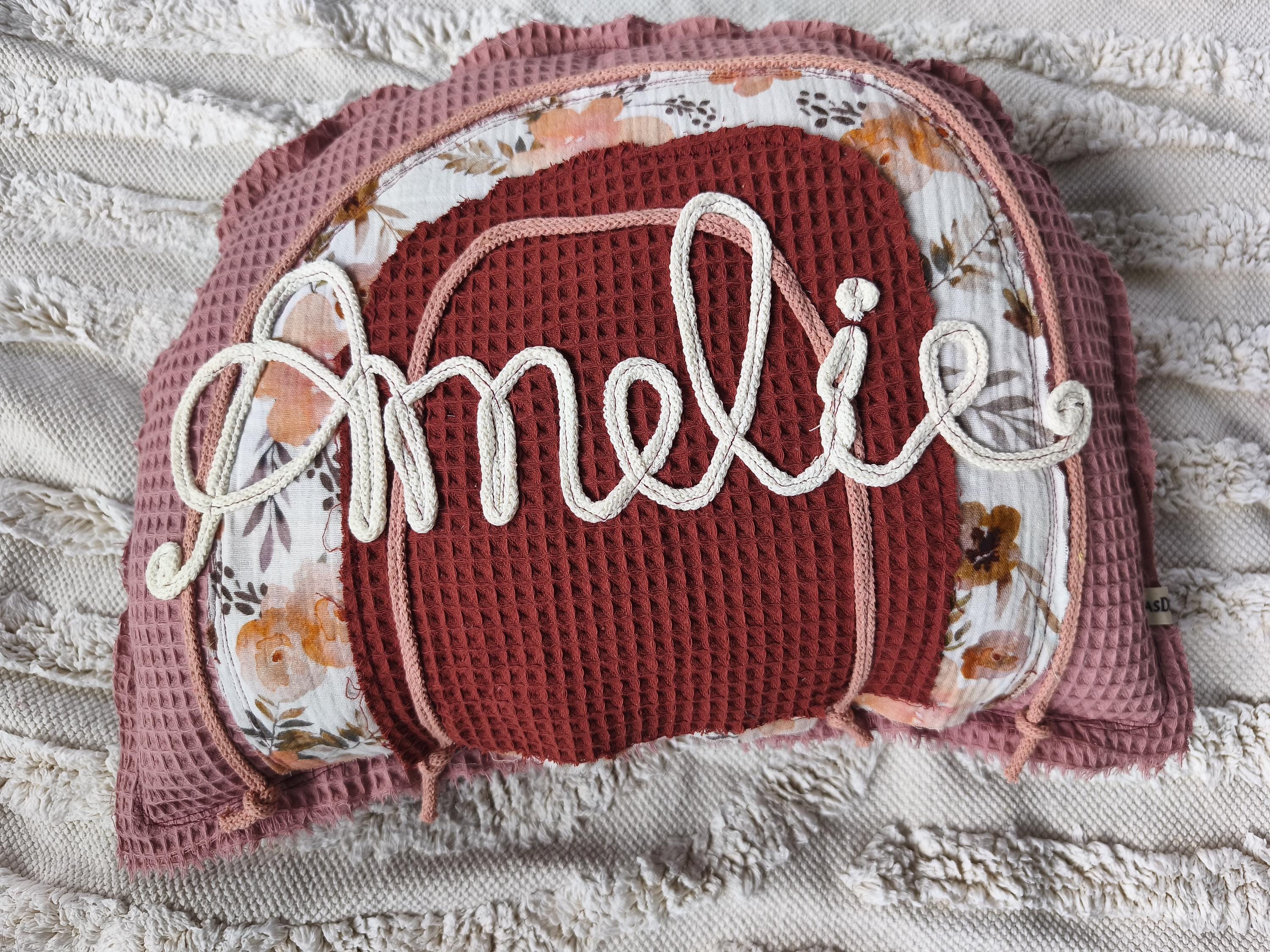 The pillow is sewn with a "wild seam" that is pulled several times, giving the pillow a very special character.
